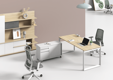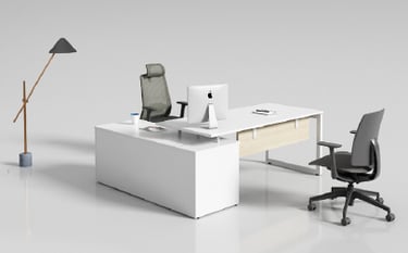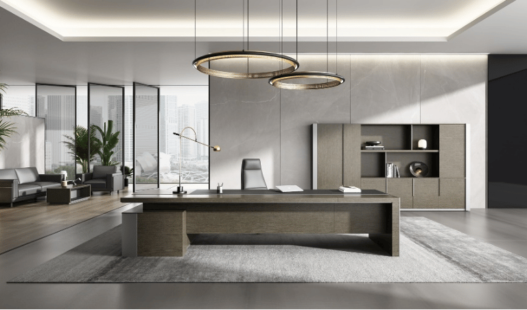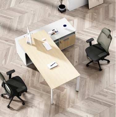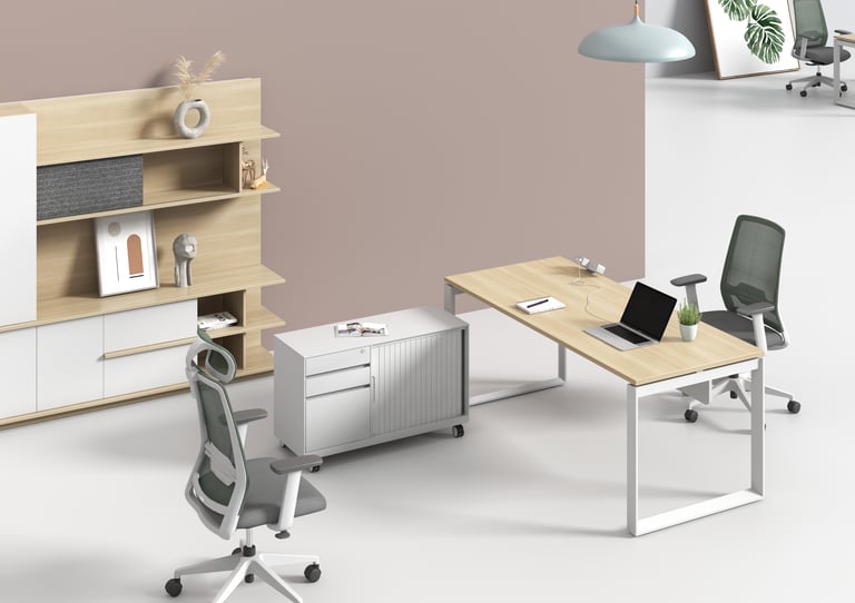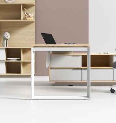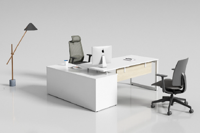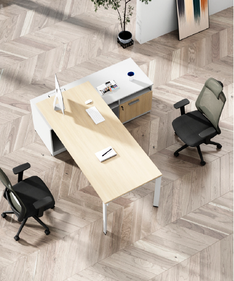 Classic modernist style, with simple, lightweight modeling, with snow mountain white, light chestnut hickory table, show the rational tone of modern office.