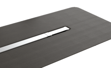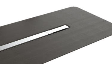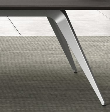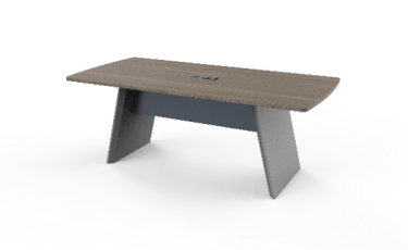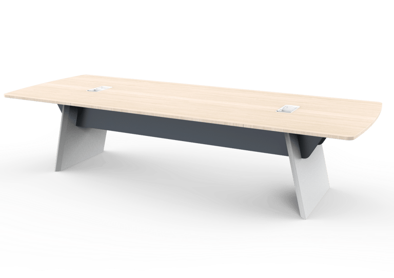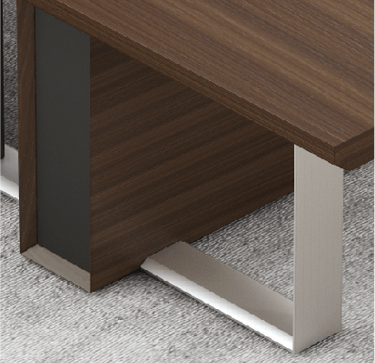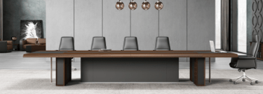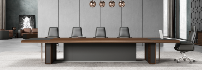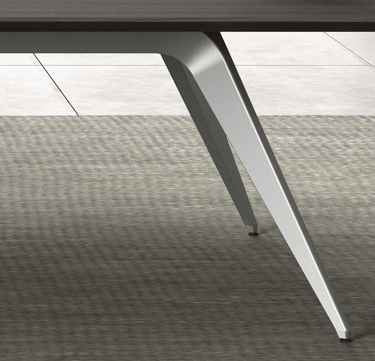 The conference table adopts rounded chamfering and diagonal cutting design elements, and the same aluminum alloy material as the wire box cover is used as decorative belt on the table to ensure the overall feeling of the product.